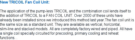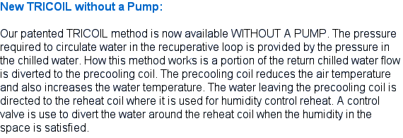 dehumidification systems. The TRICOIL system can provide a 42 degree dew point supply air temperature using a brine cooling medium or