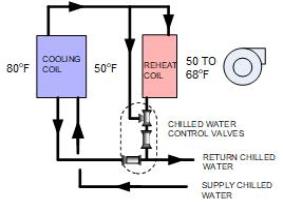 amount of reheat compared to the balance of the system that requires variable amount of reheat. Two reheat coils would be used for such