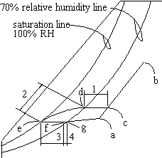 a. Room Condition 76°F DB/62.0°F WB/45%RH b. Outside Air 93°F DB/80.0°F WB c. Mixed Air; 80°F DB/67.0°F WB d. Precooled Air 72°F DB/64.2°F WB e. Primary Air 50°F DB/49.8°F WB f. Reheated Air 58°F DB/53.5°F WB g. Supply Air 60°F DB/54.5°F WB/70%RH PROCESS